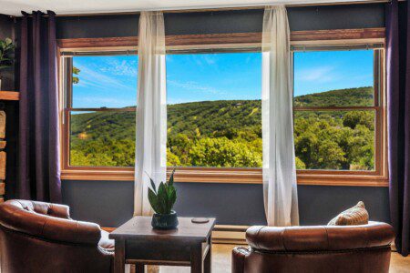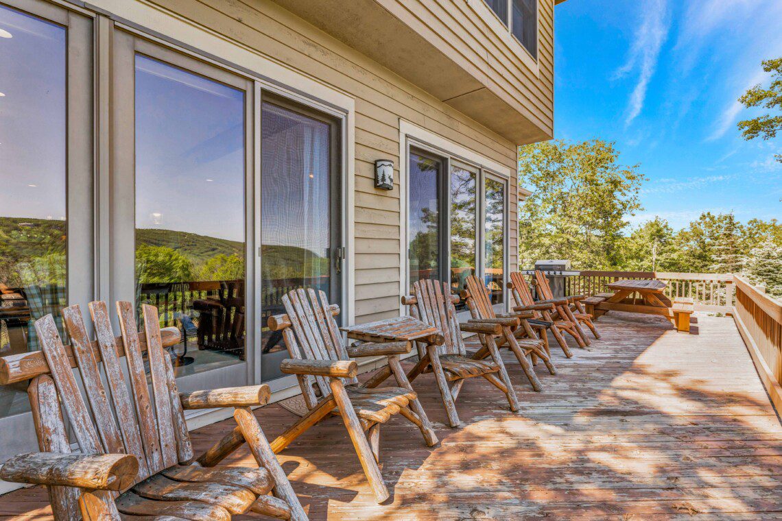 Wake up to breathtaking 180° views of Camelback Mountain from the custom rustic log chairs on our spacious wraparound deck. Whether you’re sipping coffee at sunrise, enjoying golden hour, or stargazing at night, it’s the perfect spot to relax, recharge, and soak in the beauty of the Poconos year-round.