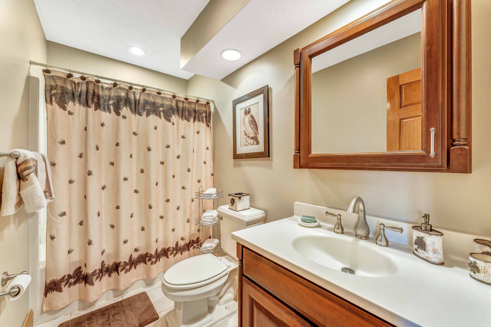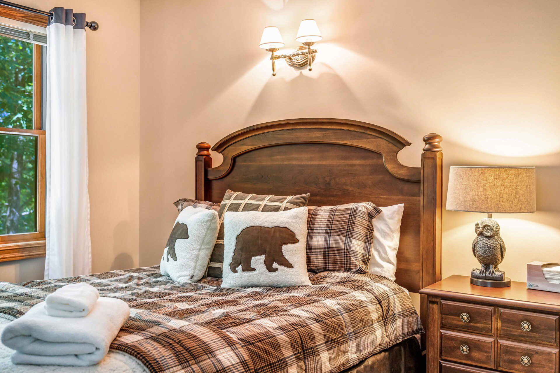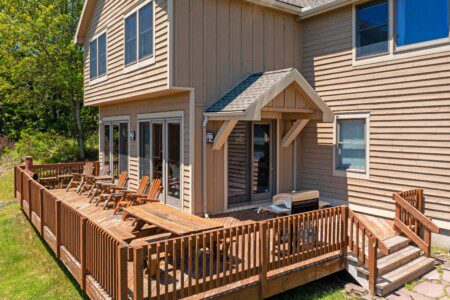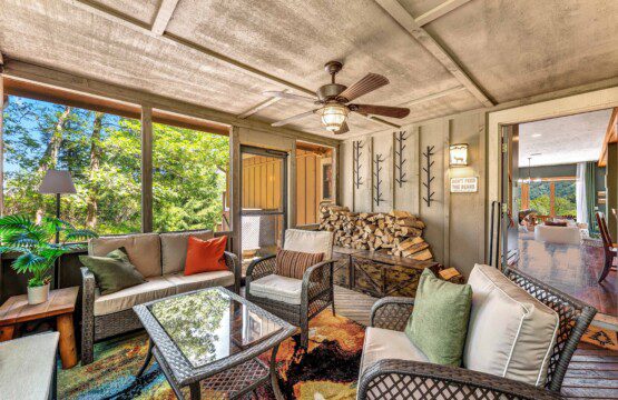 Bold colors and cozy seating make the screened-in sunroom our favorite hangout. Here you’ll find the hot tub — perfect for unwinding after a day on the slopes or trails.