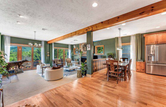 This 2,907 sq. ft. contemporary retreat combines comfort and style for an elevated mountain escape. The main living room is a true centerpiece, with a stunning wood-burning fireplace, panoramic Camelback views, and a 50” Smart TV. The open dining area seats 10 and flows seamlessly into a sleek, modern kitchen with stainless steel appliances and custom cabinetry — ideal for cooking and gathering together.