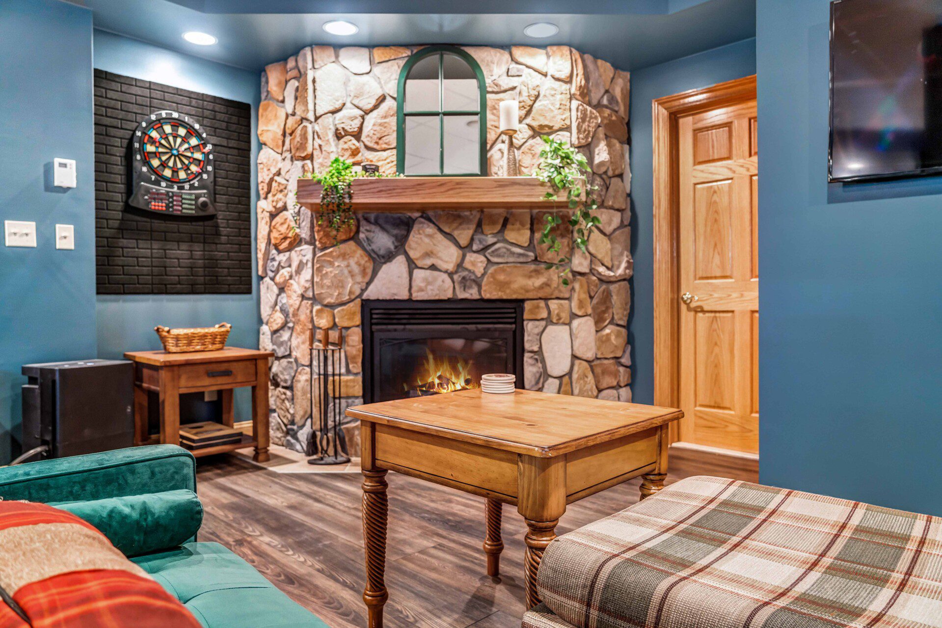 Welcome to Bear Peak at Camelback, your perfect fall retreat in the Poconos. Just 1 minute from Aquatopia, this 4BR home offers mountain views, cozy fireplaces, and space to relax. Sip coffee on the wraparound deck, unwind in the sunroom hot tub, or play in the game room with pool table, Pac-Man, bar, and Smart TV. The master suite has a king bed, private bath, fireplace, Peloton, and views. With AC/heat, stocked kitchen, and fast Wi-Fi, it’s the ultimate autumn getaway.