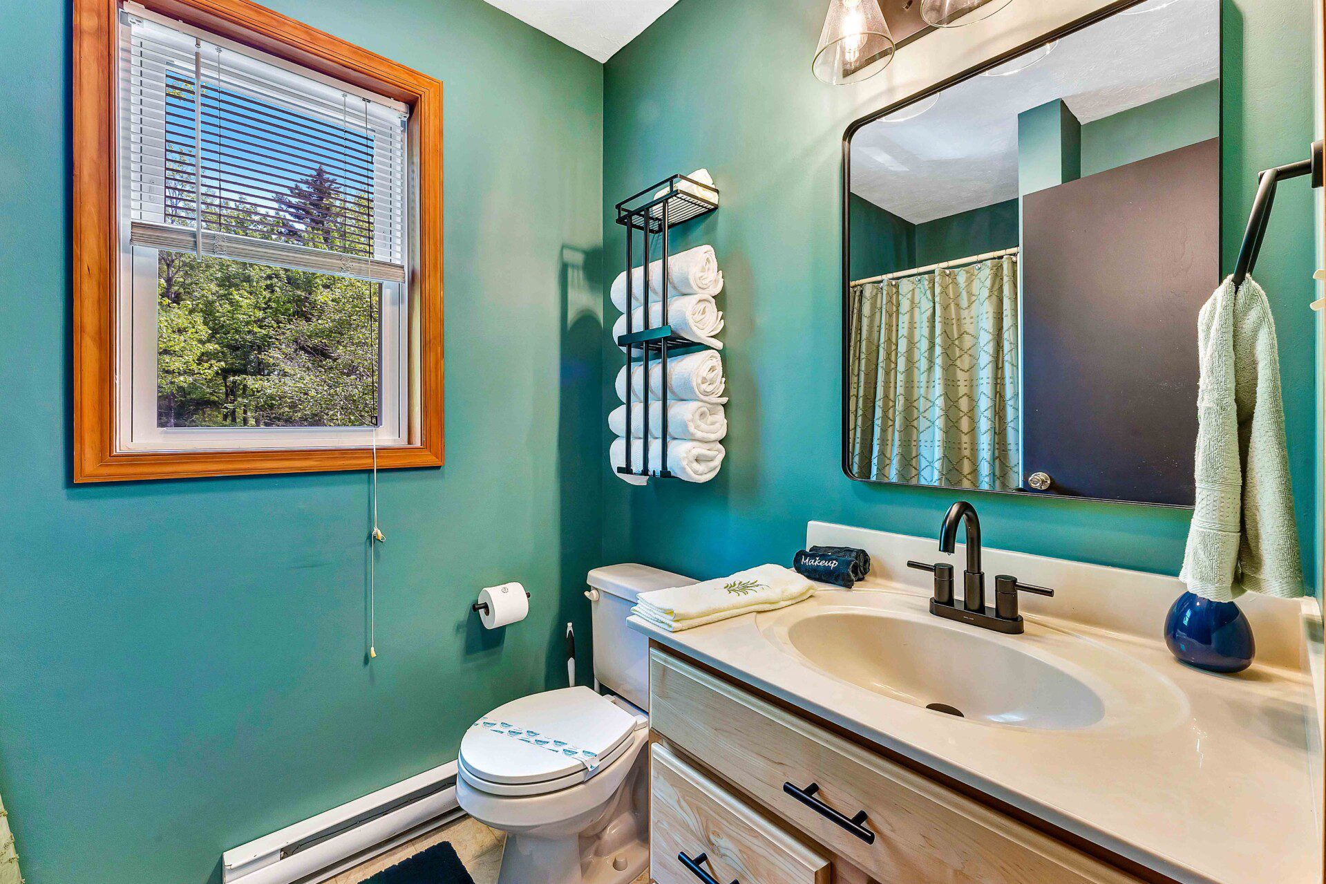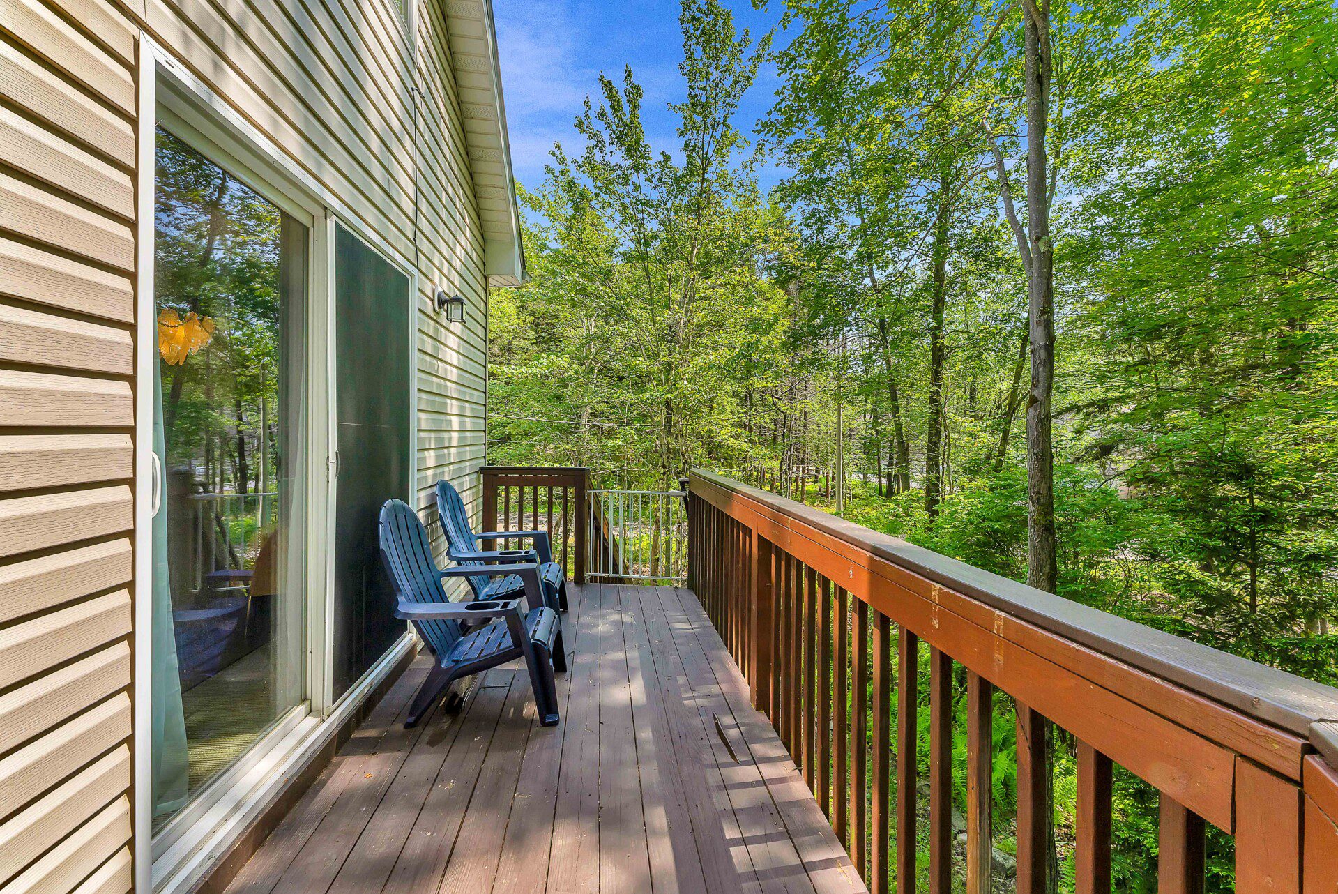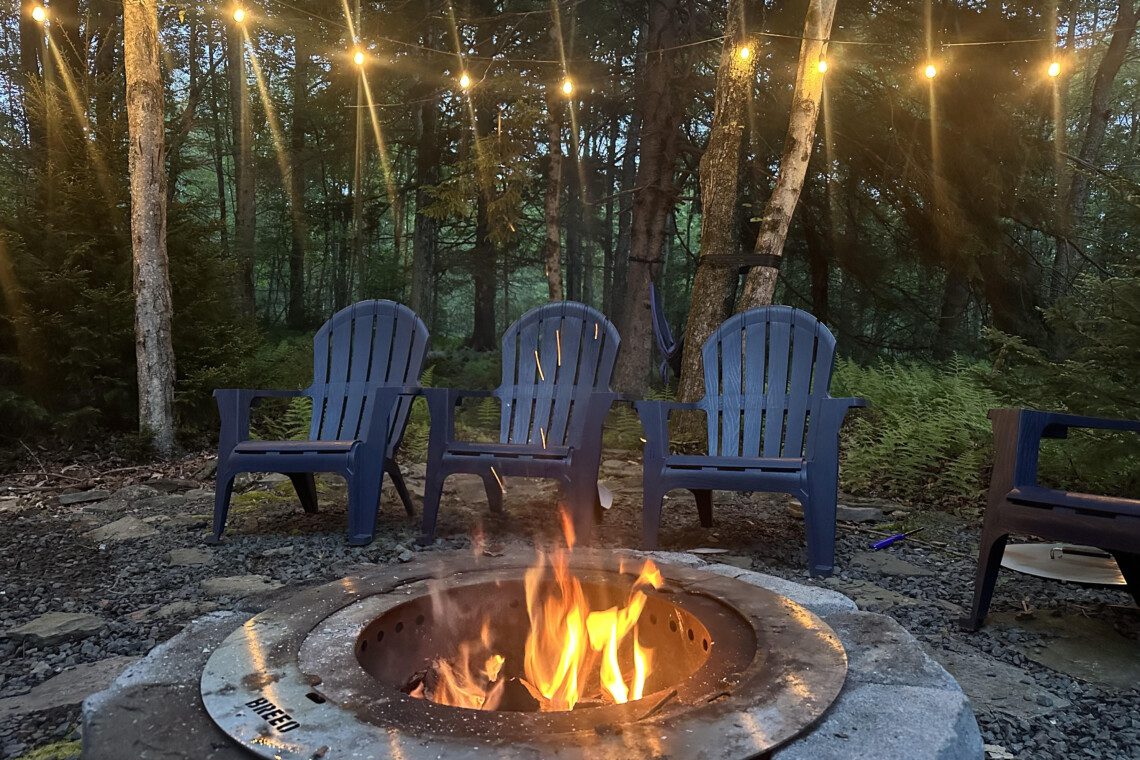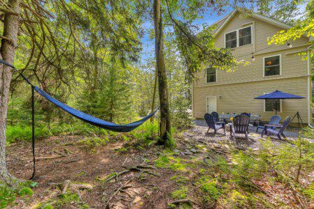 Step outside into your own forest hideaway—complete with a spacious deck, a cozy firepit, colorful Adirondack chairs, a picnic-perfect dining area, and a hammock strung between the trees. Whether you’re toasting marshmallows, sipping wine under the stars, or napping in the shade, this peaceful woodland setup is made for unwinding and making memories.