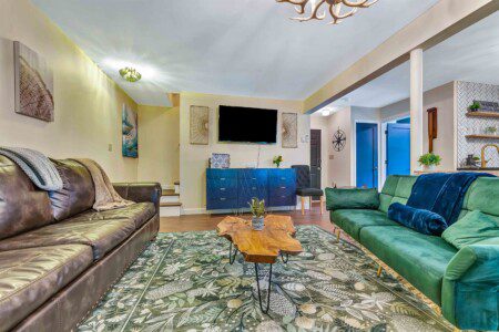 Escape to The Cozy Owl, a stylish Pocono retreat just one block from Arrowhead Lake. Perfect for fall getaways, this 3-level home features a fireplace, outdoor firepit with Adirondack chairs, and a hammock for crisp afternoons. Enjoy a game lounge with shuffleboard, Smart TVs in every room, king beds, and board games. While pools and beaches close after Labor Day, year-round community amenities and kayaks make this the ideal fall lake escape.