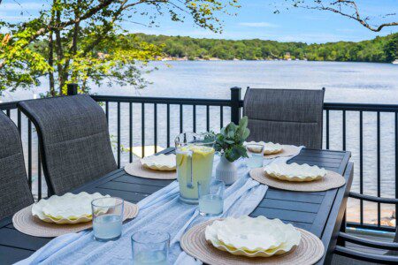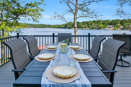 Escape to King’s Lakehouse, a spacious 4BR/4.5BA Pocono retreat where every bedroom has a private bath. Perfect for fall getaways, this lakefront home features floor-to-ceiling windows, two living rooms, and a chef’s kitchen with double ovens. Step outside to a multi-level deck with stunning lake views, roast marshmallows at the firepit, or paddle kayaks and a canoe while soaking in autumn colors. With Smart TVs, Wi-Fi, and dual-zone heat & AC, comfort meets nature for your perfect fall retreat.
