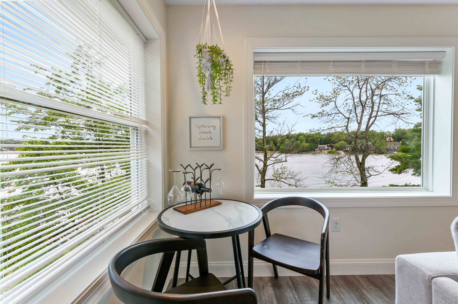 Gather around the spacious dining table and enjoy meals together with beautiful views of the lake!