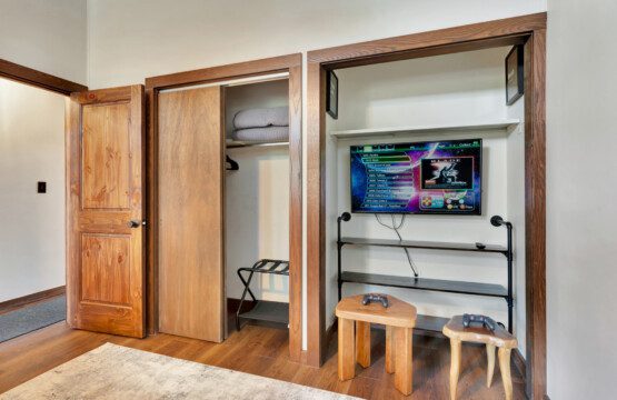 ● Bedroom #4: Bunk beds with 2 full-sized mattresses, 1 queen bed, 50″ TV with gaming console and 1,000+ games, 2 controllers