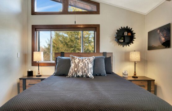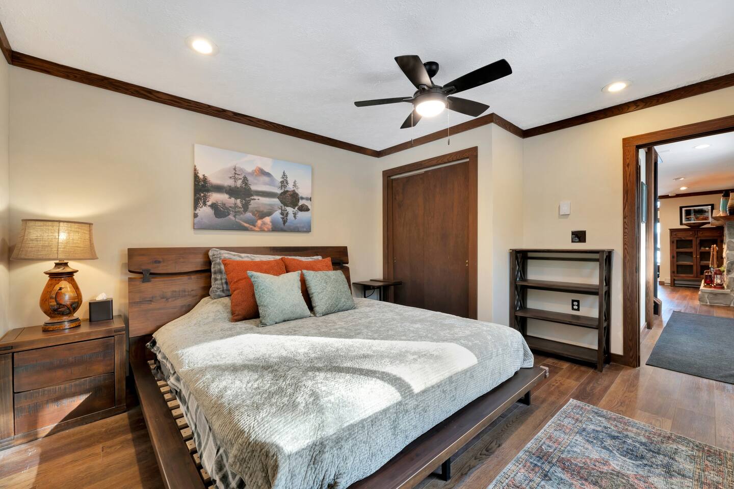 ● Bedroom #1: King-sized bed with mountain-inspired decor