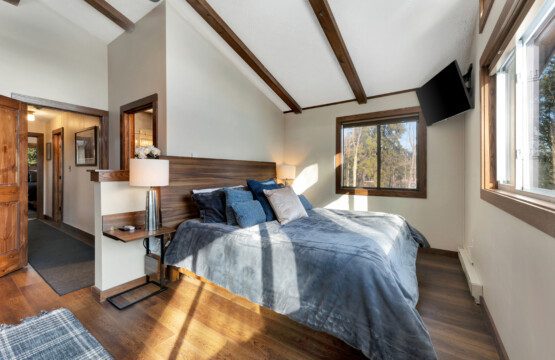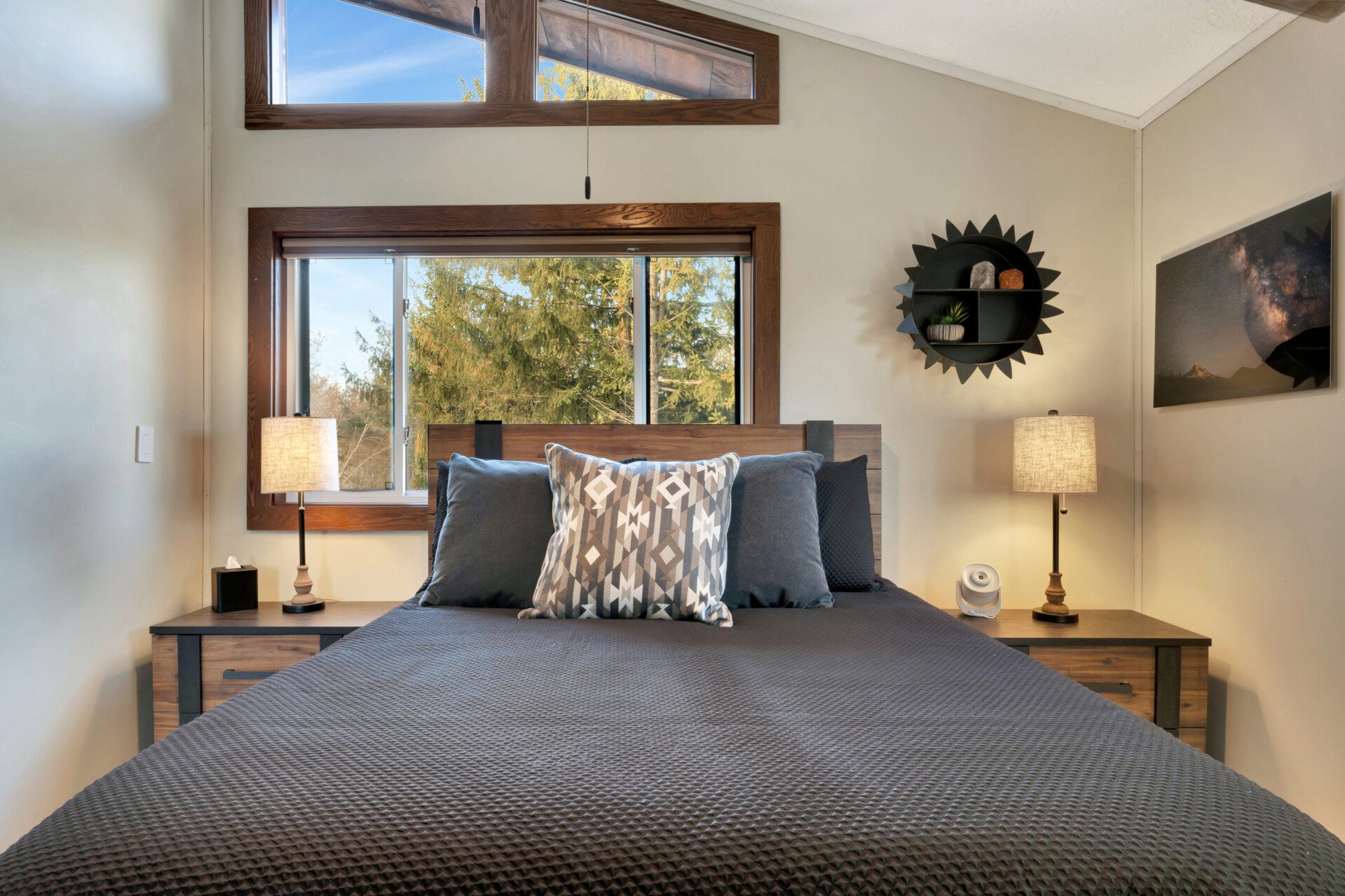 Bedroom #1: King-sized bed adorned with mountain-inspired decor.