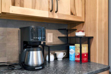 ● Drip coffee machine with coffee, sugar, tea, and creamer