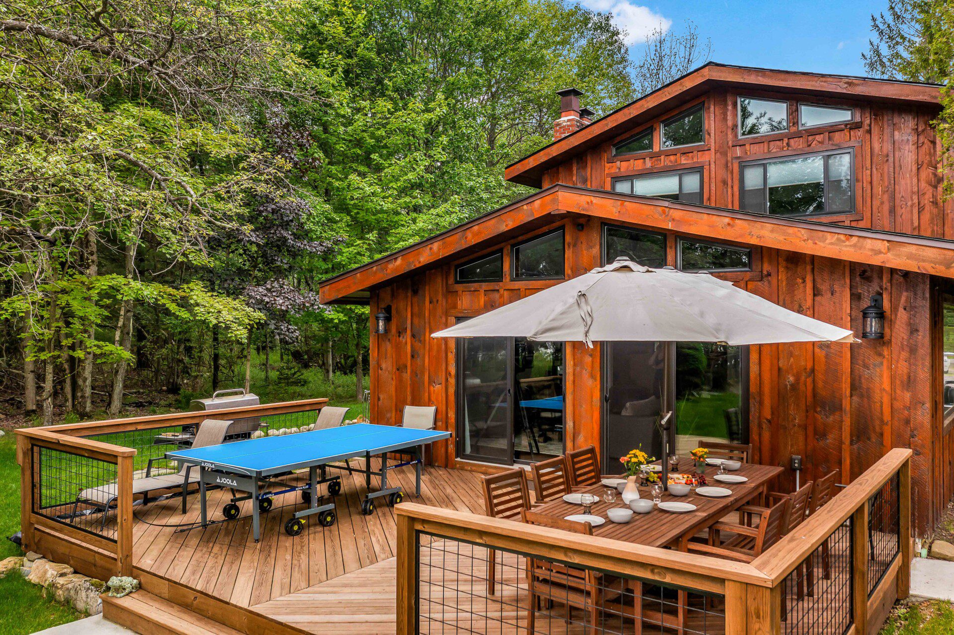 ● As of December 2nd, 2025: outdoor furniture and ping pong table winterized; available again April 2026; firepit available year-round