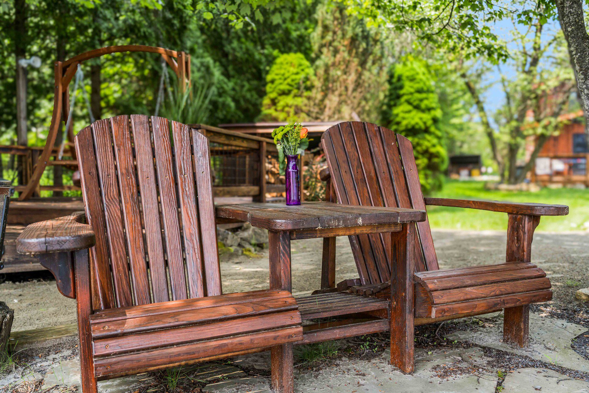 ● Large deck with wooden chair swing and lounge chairs