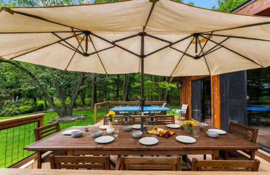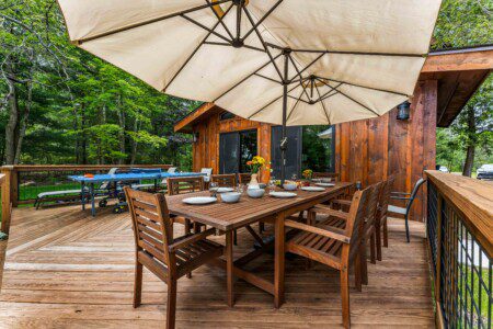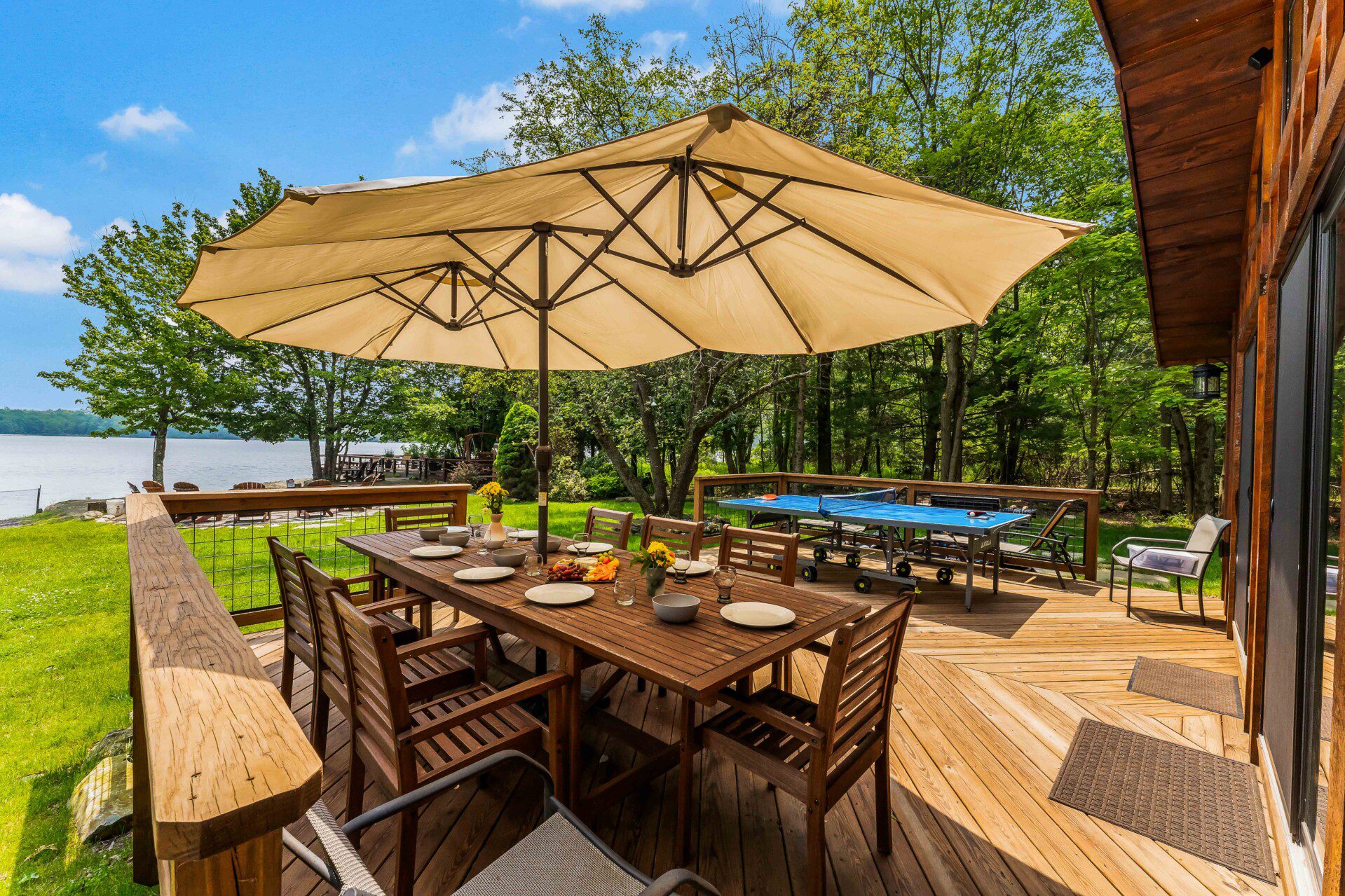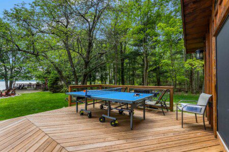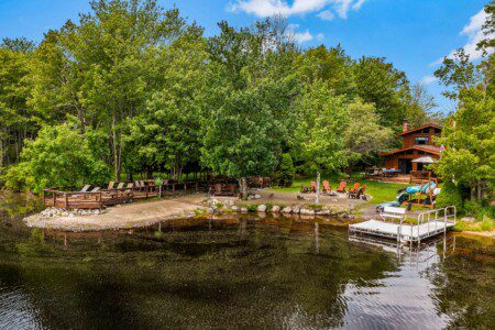 Experience the magic of fall at Mohawk Cabin, a newly renovated lakefront retreat in the Pocono Mountains! Surrounded by Native American-inspired décor, this getaway features stunning foliage views from two expansive decks plus a huge wooden deck over the water. Sip hot cider in the crisp air, paddle the lake in provided kayaks, enjoy golf putt-putt and ping pong, then gather at the fire pit for cozy s’mores. Your perfect fall retreat awaits!