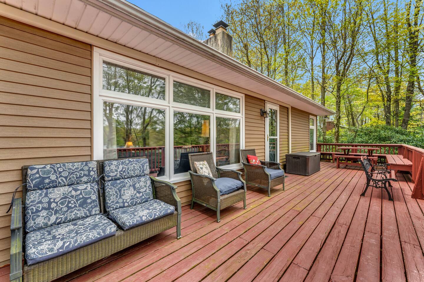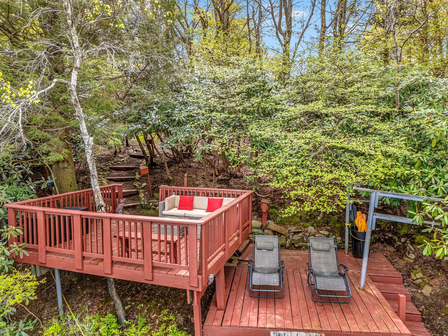 Dock-Deck with an outdoor couch and lounge chairs for soaking up the views of the lake.