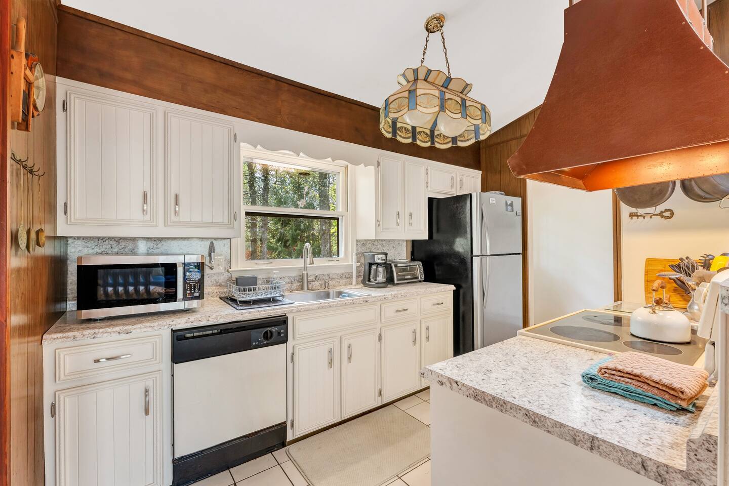Step into a living space filled with rustic, antique charm that reflects generations of family history. Sliding glass doors open to the serene lakefront backyard, offering a peaceful retreat by the shores of East Emerald Lake.