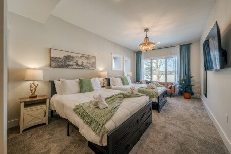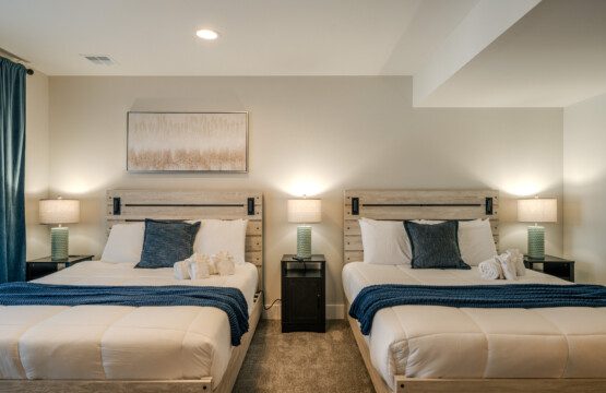 ● Bedroom 8: Two queen beds + two convertible lounge chairs that combine to form a twin bed