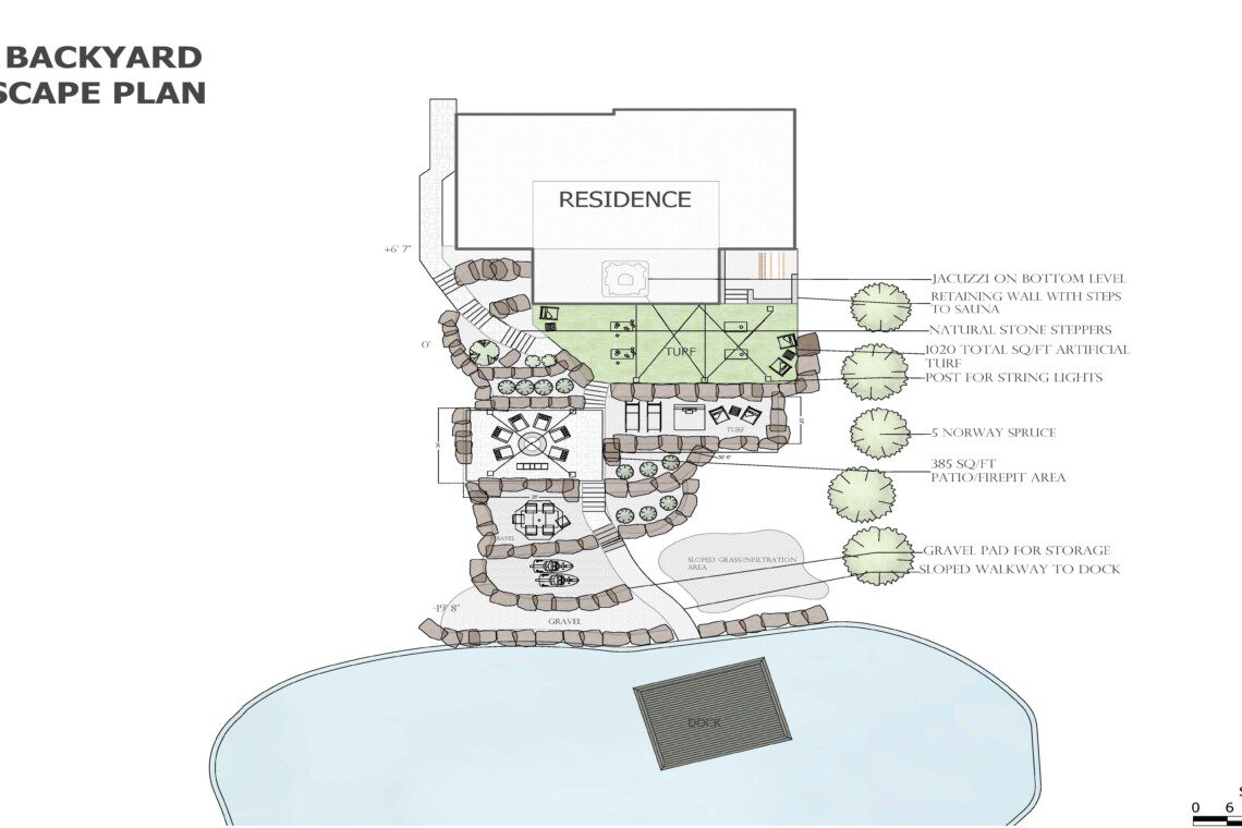 ● Outdoor furniture across all three deck levels