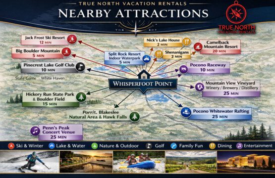 Welcome to Whisperfoot Point, a brand-new luxury lakefront estate. With soaring ceilings, walls of glass, and panoramic water views, this one-of-a-kind retreat blends modern architecture with warm mountain elegance. Designed for elevated group getaways, it offers expansive gathering spaces, private lake access, and spa-style amenities. The atmosphere is effortless, refined, and truly exceptional—experience elevated living at Lake Harmony.